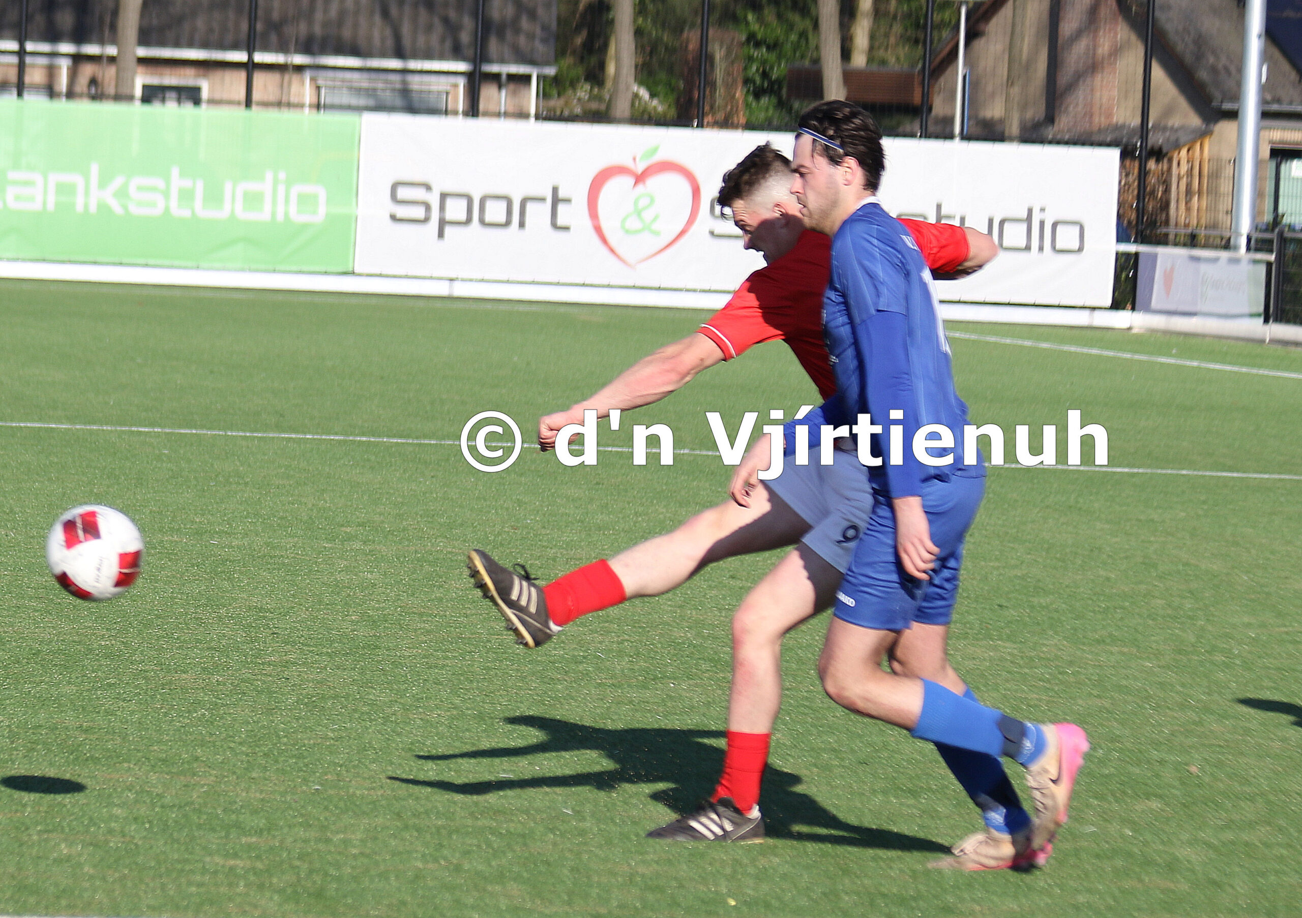 Foto 5: het schot van Justin van der Slikke dat de 1-2 inluidt