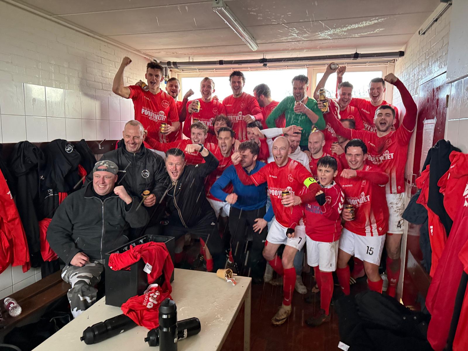 Foto 7: Vreugde in de kleedkamer na het binnenhalen van de 2e periodetitel
